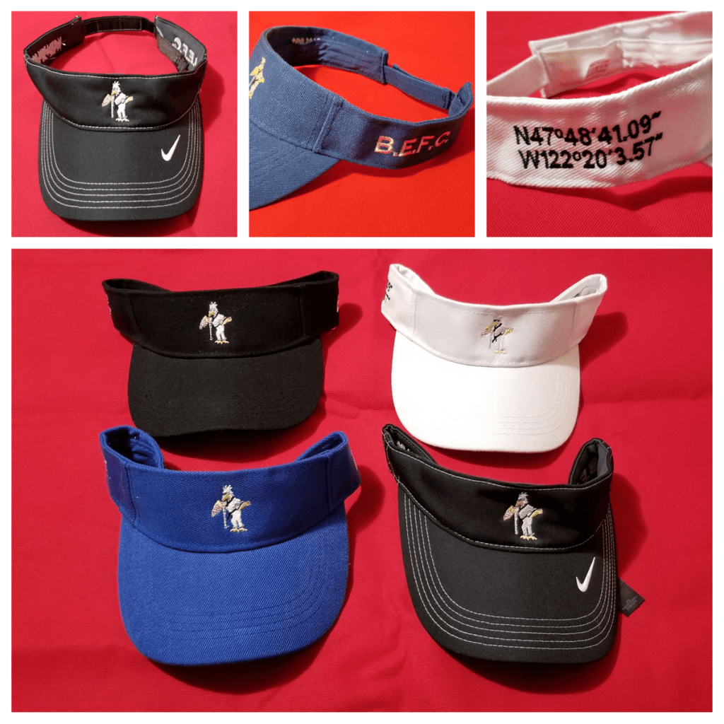 My client LOVES sunvisors! From the beginning, I knew that though this is the smallest item, it will present a new challenge for us. The visor has a limited embroidery field (2-2.5 inches tall in front; 1.5 in. on the sides) so I had to get creative with the placement and in hooping the item. My client & I decided to keep the eagle design in the front, and put the group name and the GPS location on each of the sides. This way, we can make the logo as big as possible. Ironically, it’s the tiniest logo that took me the longest to do!