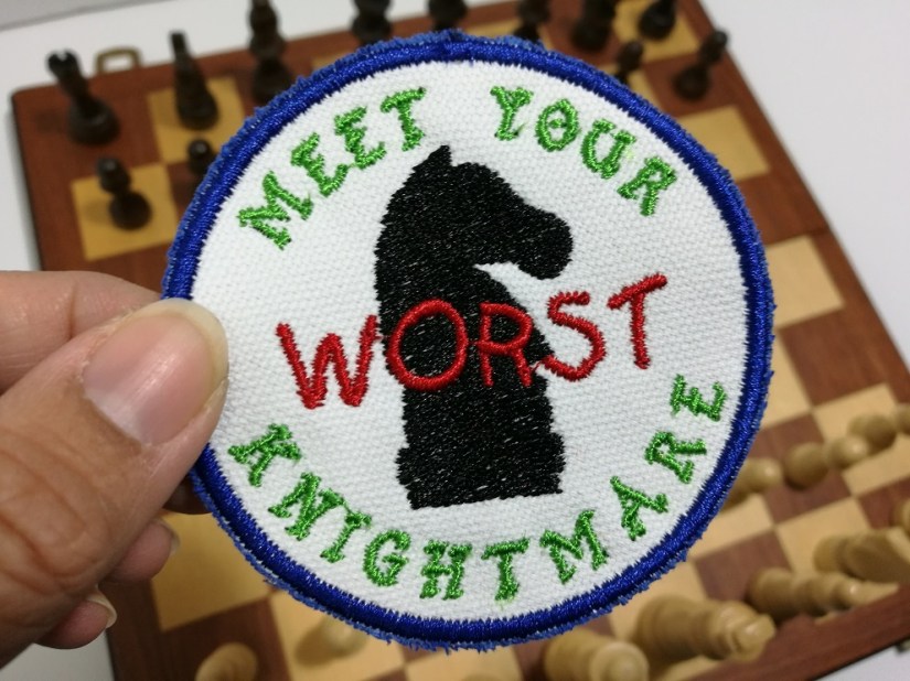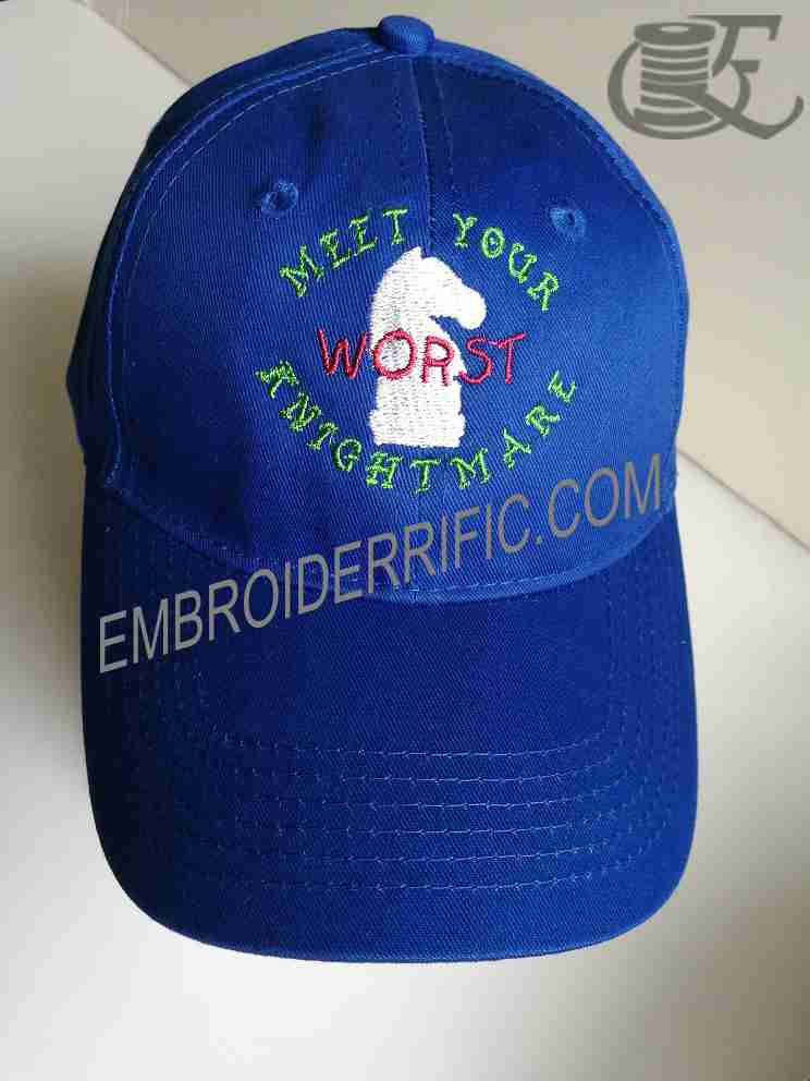 Using our original designs, we sell chess-themed hats, apparel, and patches through our Etsy Shop (EmbroiderrificNW).
